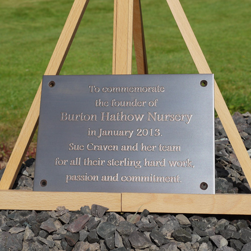 Our Bronze Commemorative plates are made to measure using 3mm thick quality bronze, and we advise either a cream or white infill. This product is very low maintenance