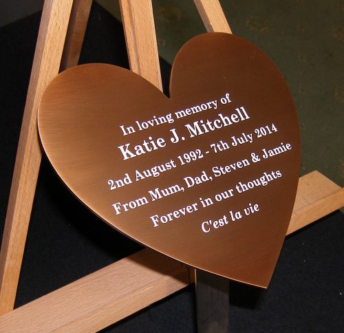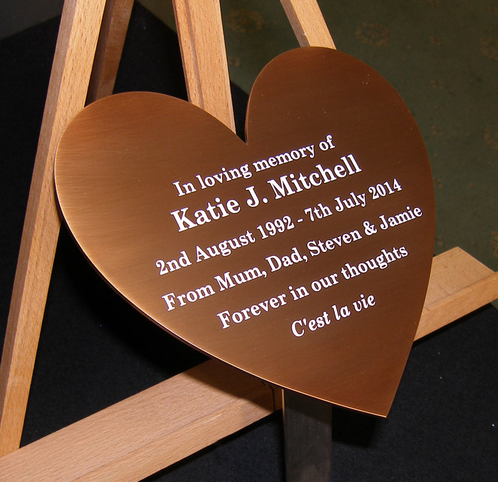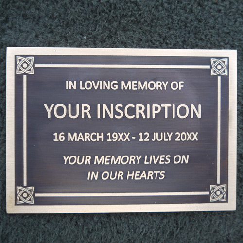 There is also the option for reverse etching where we etch away the background leaving the letters standing proud. This product is the premium material for memorials and requires no maintenance. We patinate the bronze to a dark colour which ages beautifully over time.