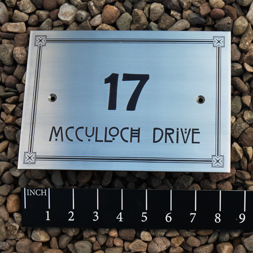 A more modern material than brass or bronze, suitable as a contemporary or modern house sign.