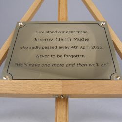 • Our marine quality s/steel plaques, fabricated to your specification and able to take any colour of infill will give you a constant memorial of a loved one or special occasion.